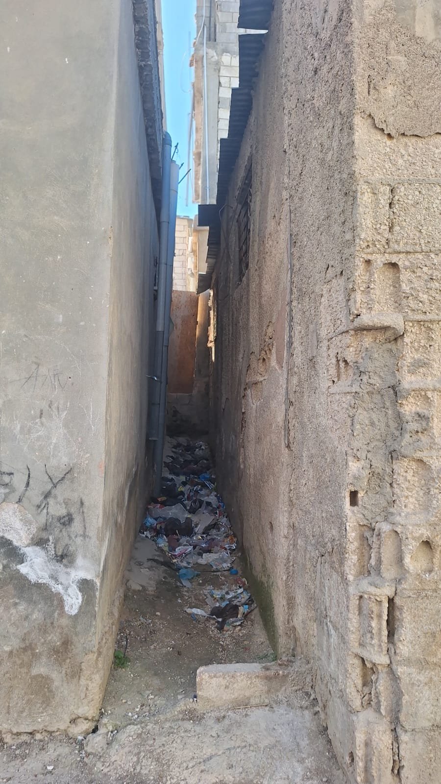 بالإضافة إلى مشكلات التلوث البيئي، التي أدّت إلى حالة صحية بائسة، وأمراض وأوبئة، وروائح كريهة، كذلك المياه العادمة التي تتدفق عبر قنوات تمّ إنشاؤها بدلًا من شبكة الصرف الصحي والذي تكاثر حولها الذّباب والحشرات، عدا عن الفئران والجرذان، كما أنّ المياه العادمة والمجاري المنسابة عبر هذه القنوات قد تسبّبت بنقل الجراثيم والأمراض المعدية المنقولة من الحشرات وغيرها وخصوصًا في فصل الصّيف.